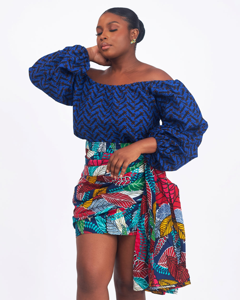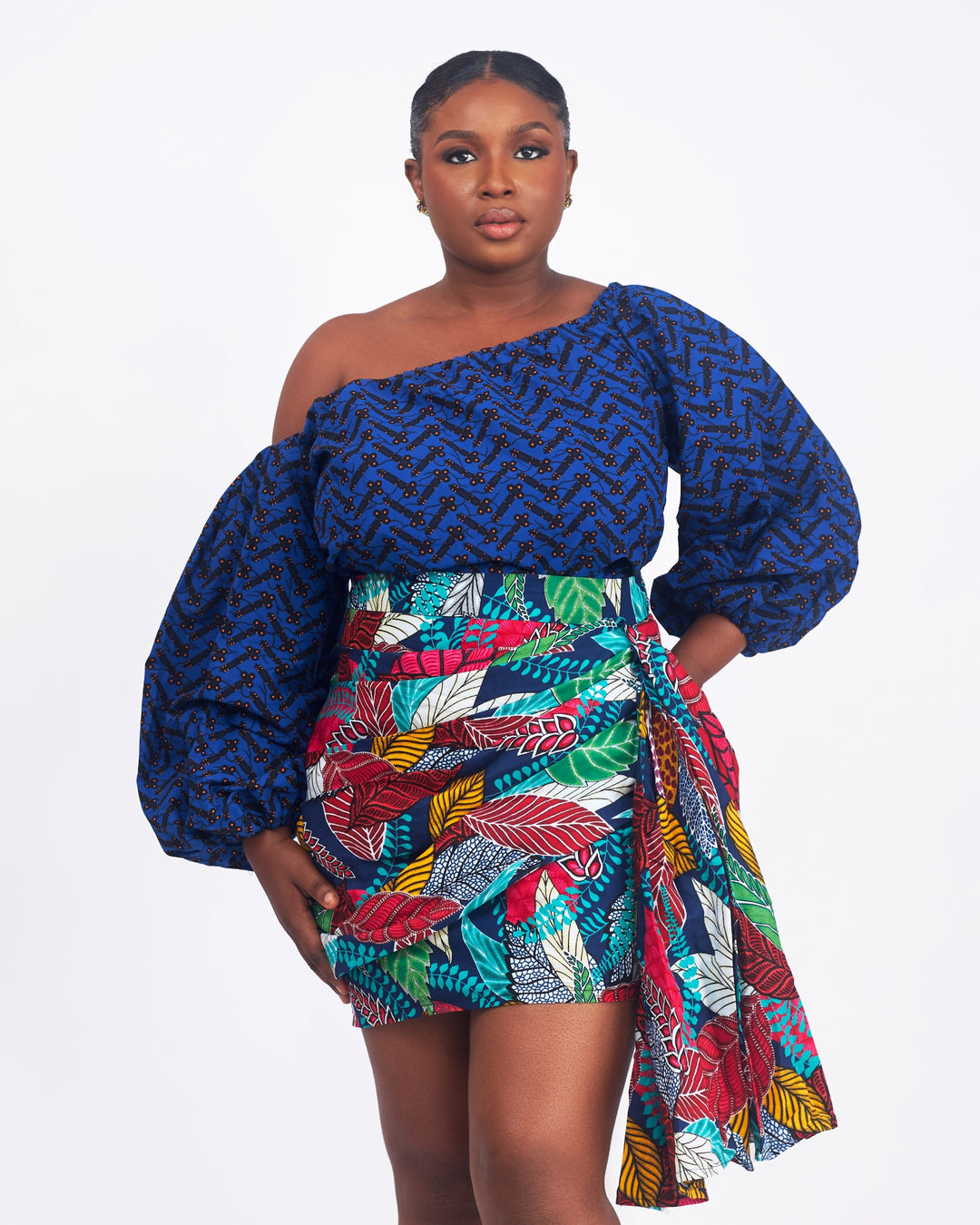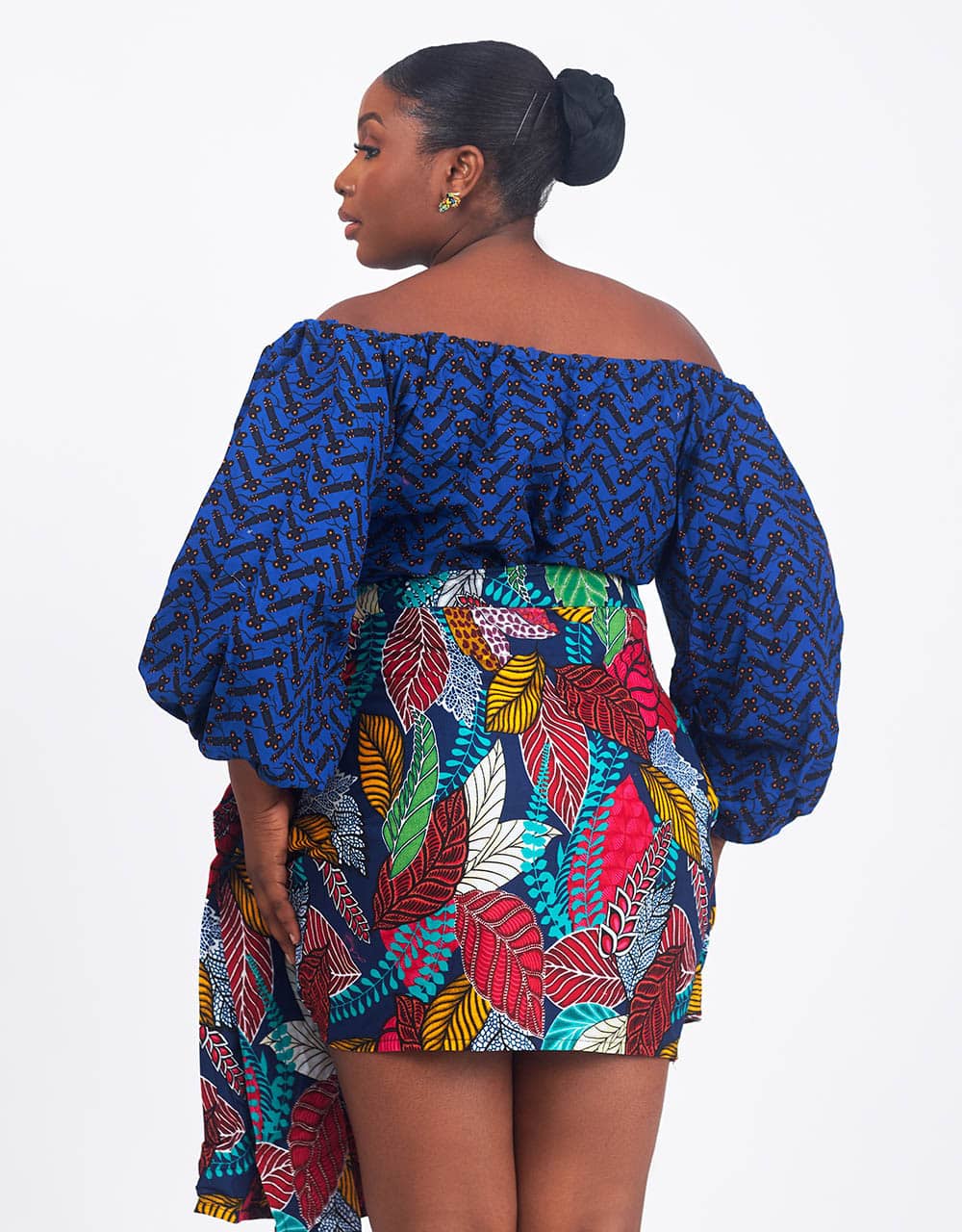 Nerose Drape Mini Skirt and Balloon Sleeve Blouse