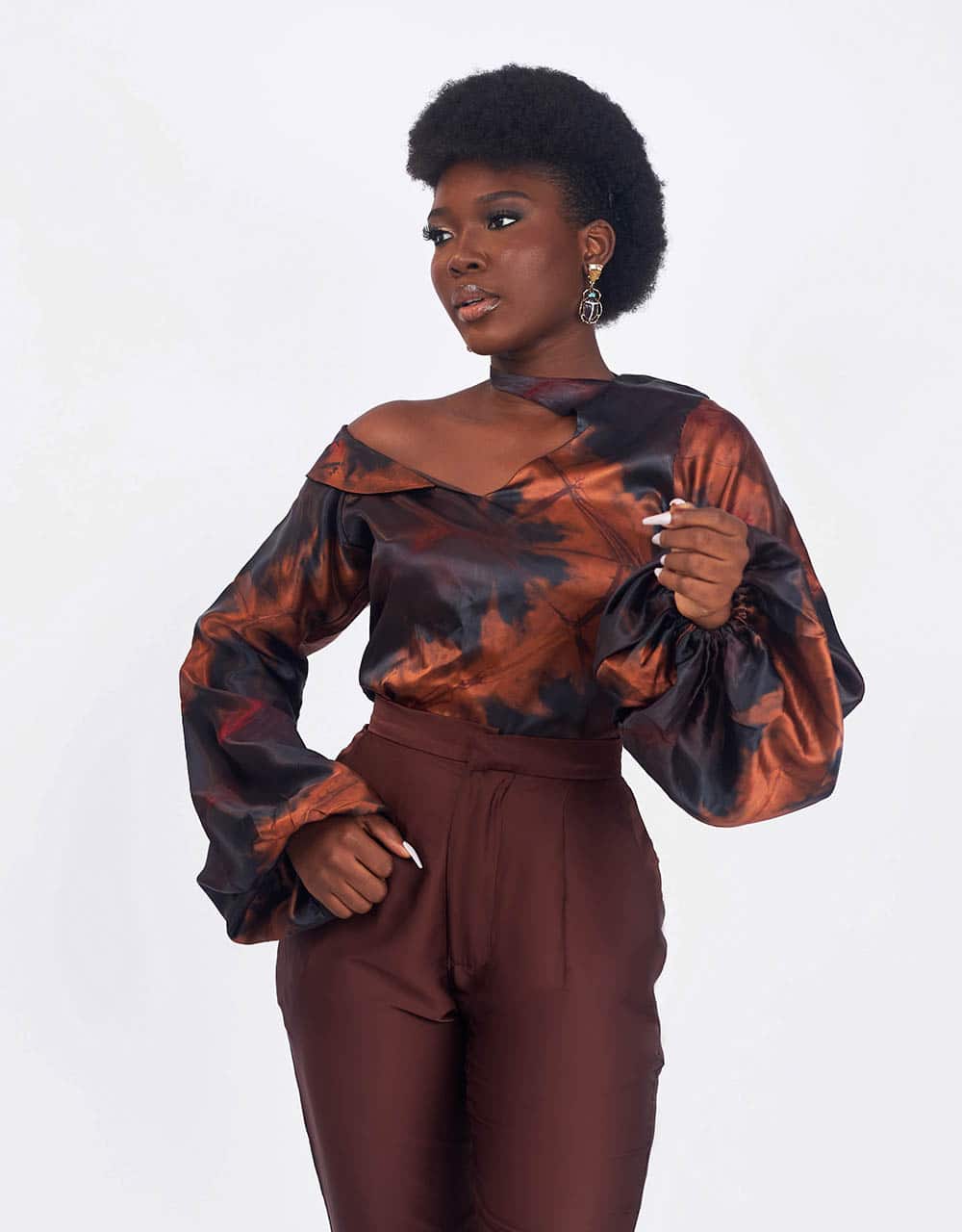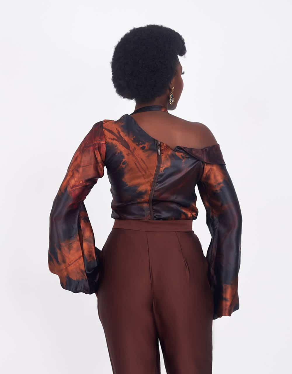 Nerose Asymmetric Blouse with Balloon Sleeves